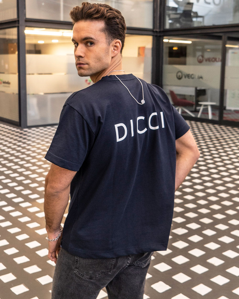 Se per voi meno è meglio, questa t-shirt basic blu oversize non può mancare nella vostra collezione. Realizzata al 100% in cotone, questa t-shirt blu è pensata per darvi uno stile irriverente. Con il nostro logo DICCI impresso, questa t-shirt oversize ha un peso superiore per una migliore vestibilità. Disponibile in nero.