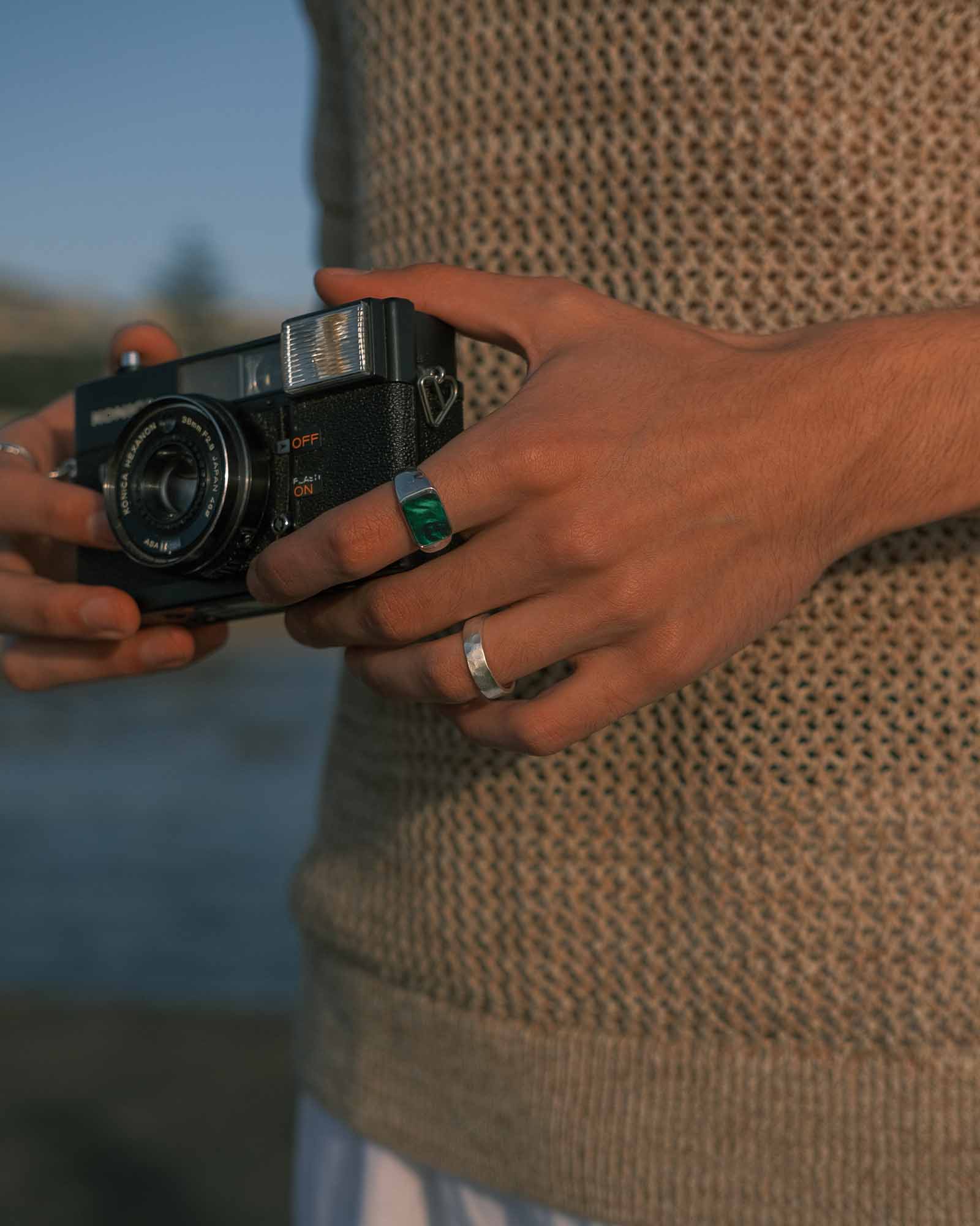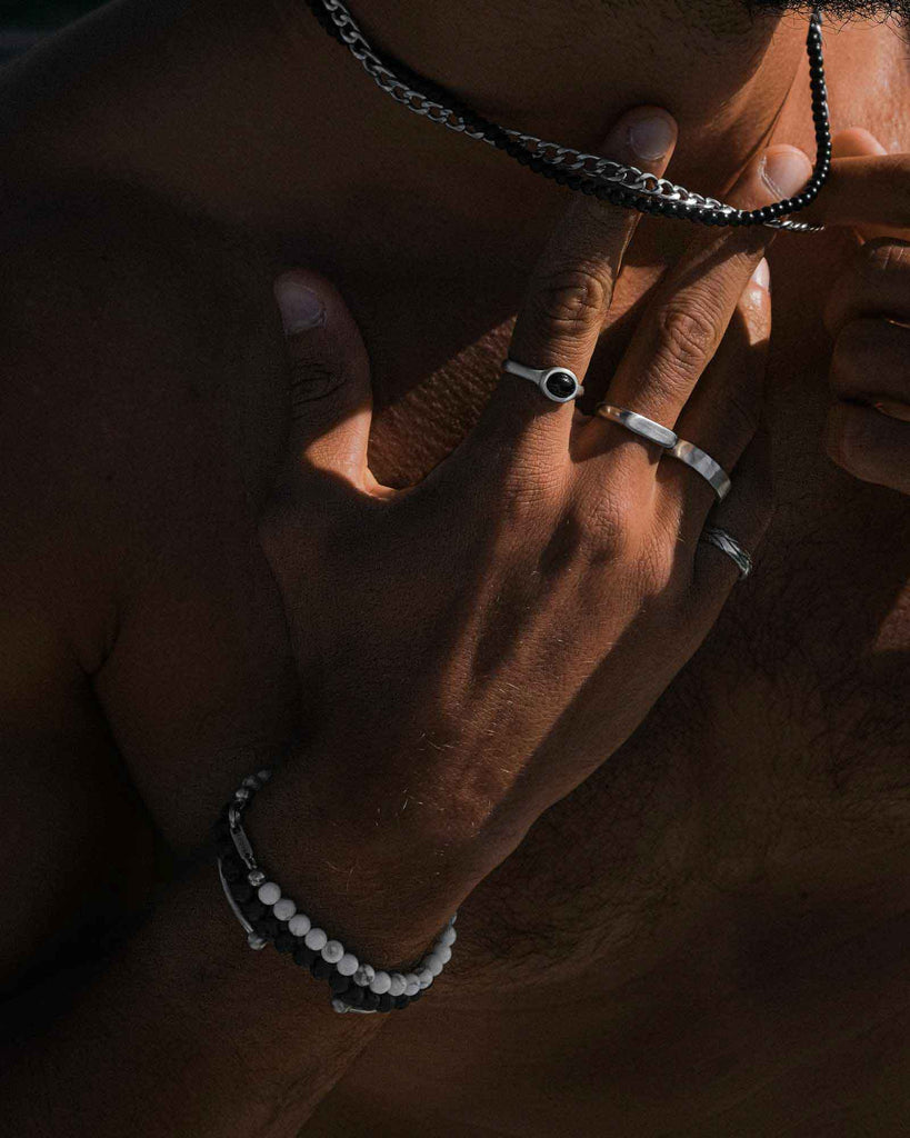 Creato a mano per conferire all'anello un aspetto unico, questo anello minimal in argento con texture martellata è un pezzo unico e senza tempo che non può mancare nella vostra collezione di anelli. La semplicità dell'anello lo rende facilmente abbinabile a qualsiasi occasione, mentre il dettaglio della texture ne eleva il look. Il design regolabile assicura una vestibilità comoda e sicura per qualsiasi dimensione del dito. Se volete ottenere un look più irriverente, abbinatelo ad altri anelli Dicci.