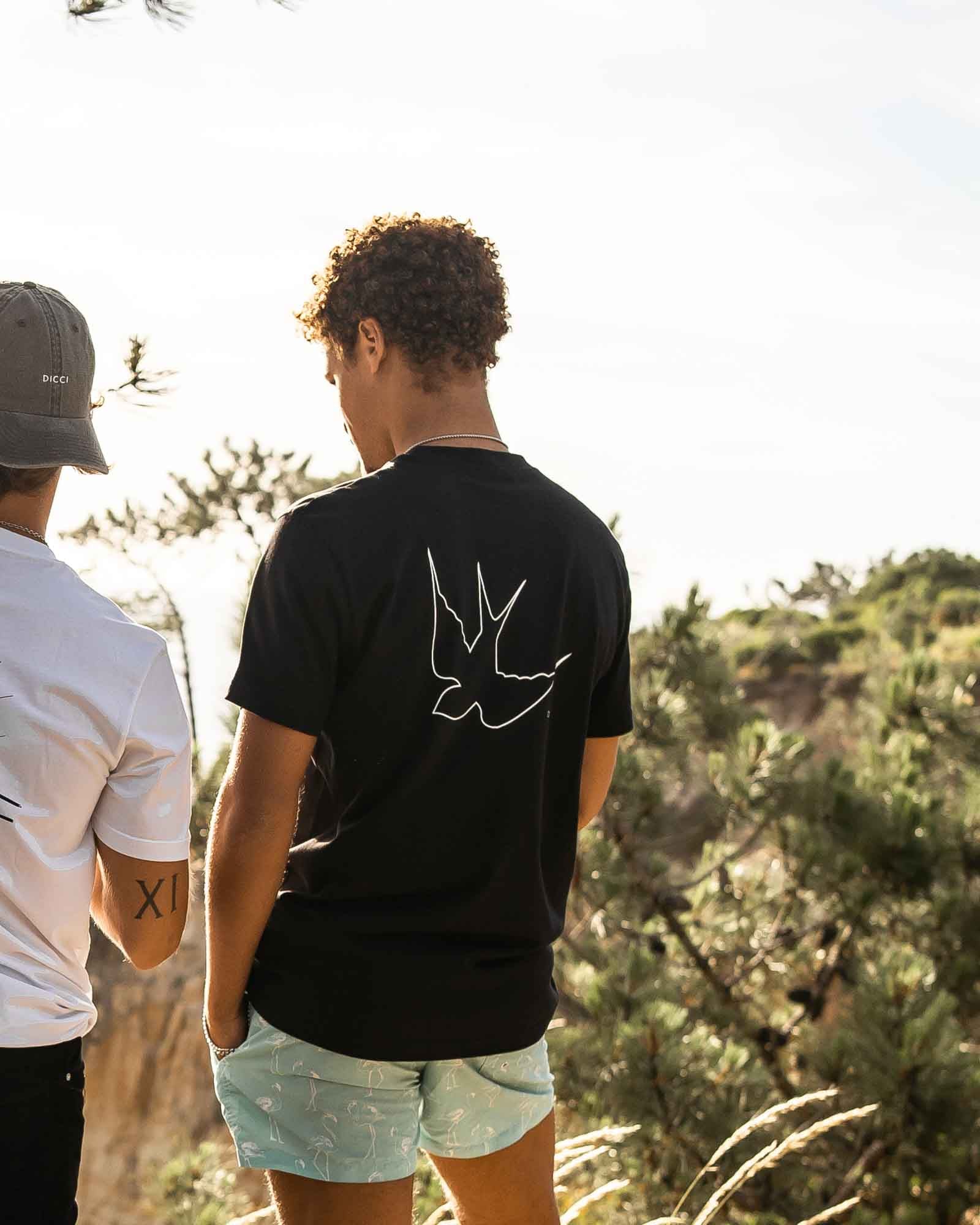 T-shirt preta feita em 100% algodão com um estampado de pássaro em branco nas costas. A nossa nova T-shirt Flying Bird em modelo slim fit é a peça que te tem faltado. Ideal para combinar com as nossas jóias e acessórios. Veja também a nossa colecção de t-shirts e hoodies.